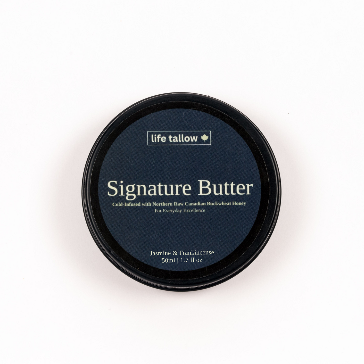 Crafted as the βgo-toβ beef tallow butter, Signature is cold-infused with Northern Canadian buckwheat honey and essential oils to preserve their full strength β available unscented or delicately scented with jasmine & frankincense.